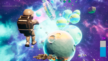 WASD 在星球上移动,或者在太空中切换移动方向。空格启动喷气背包推进。。喷气背包有一定容量,只有当角色回到星球上才会自动补充。一共有三关,主角的任务是从起始点,合理使用喷气背包,在星球之间移动,最终到达空间站(环形中间的部分)